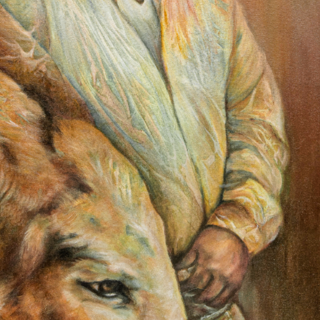 Berbeyer paints on soaked cotton paper, pouring hand-ground pigments, then lifting light back through translucent veils—an intuitive push-and-pull she calls “painting the pulse behind the skin.” The resulting portraits glow with dignity, resilience and a timeless invitation to look deeper.